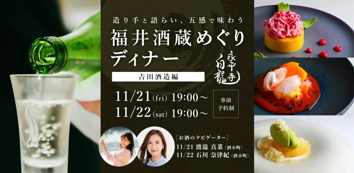 「永平寺白龍」を中心とした6種の日本酒を主役に据え、
